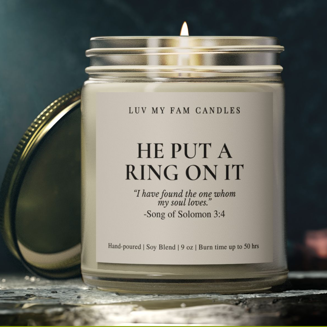 He Put a Ring On It – Song of Solomon 3:4 Candle with Scripture | 9oz Coconut Apricot Wax