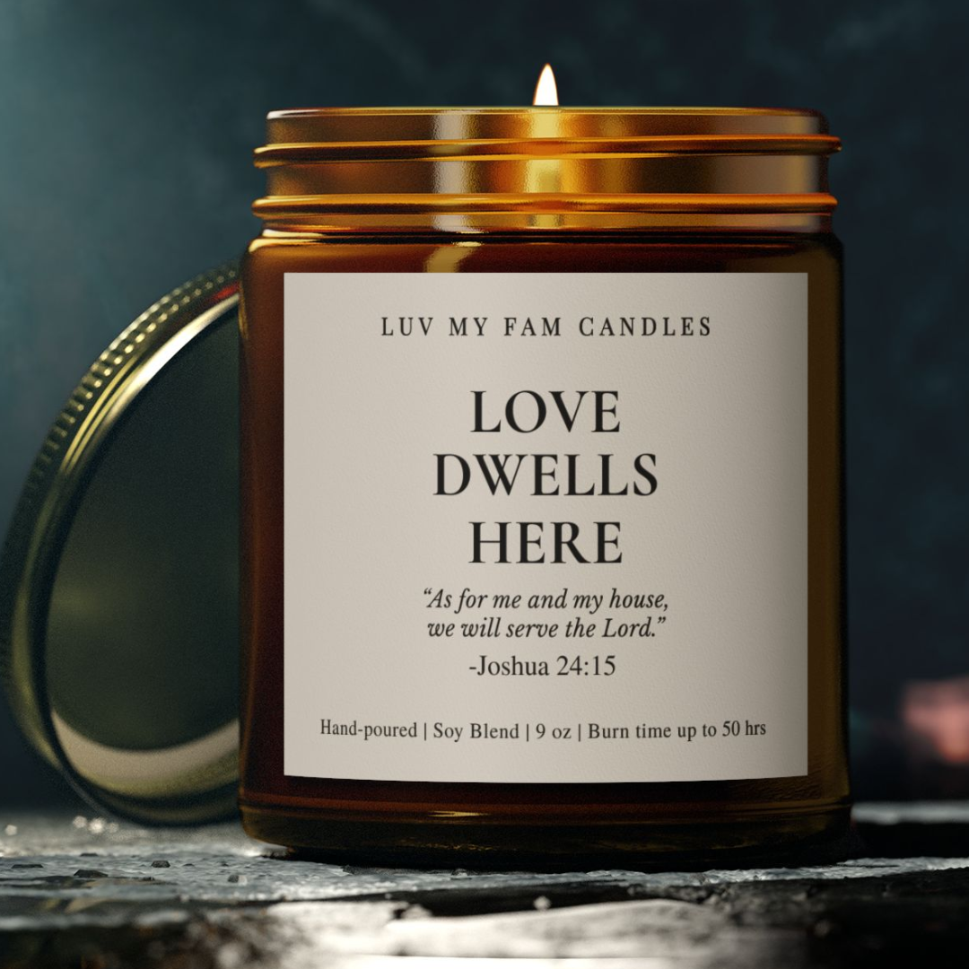 Love Dwells Here – Joshua 24:15 Candle with Scripture | 9oz Coconut Apricot Wax