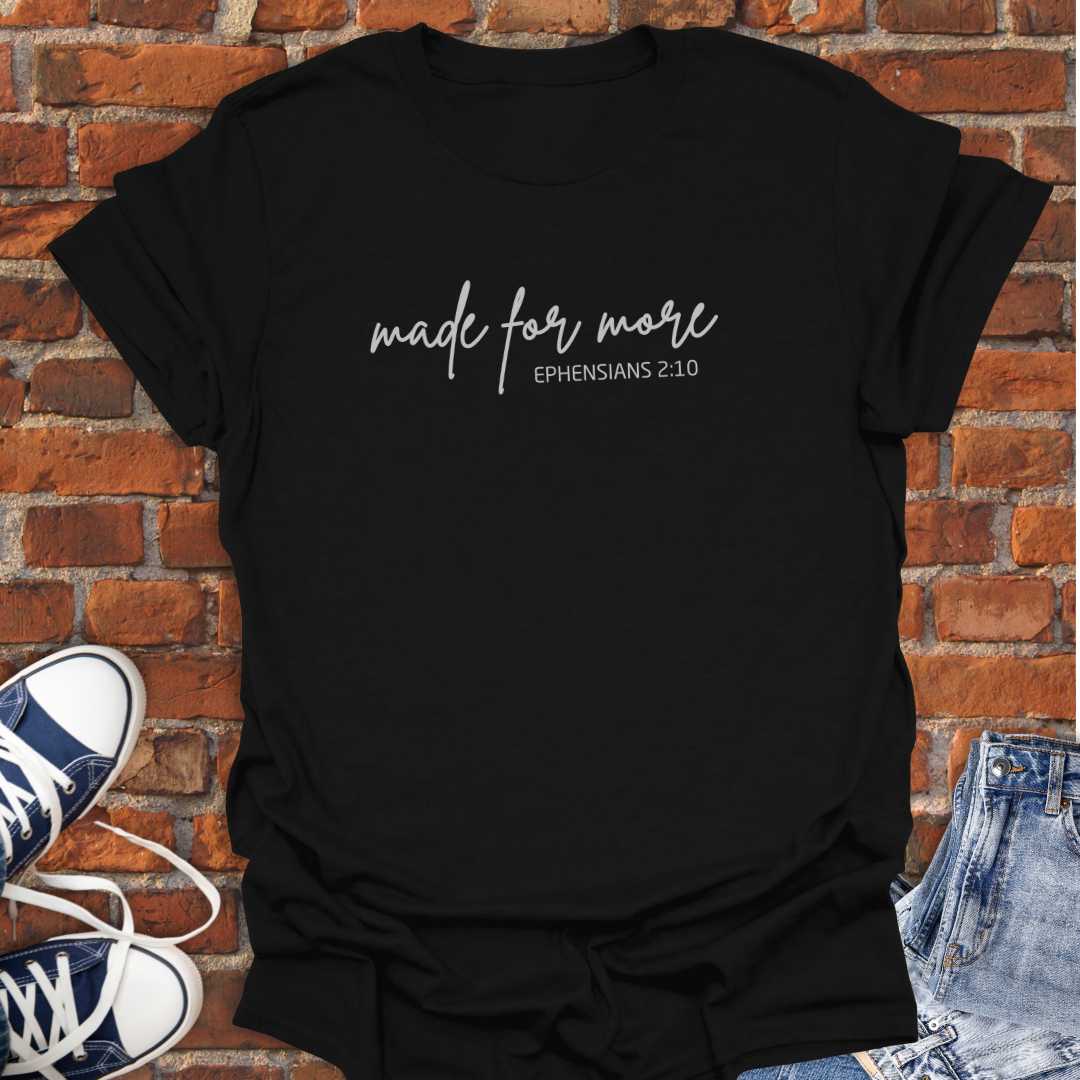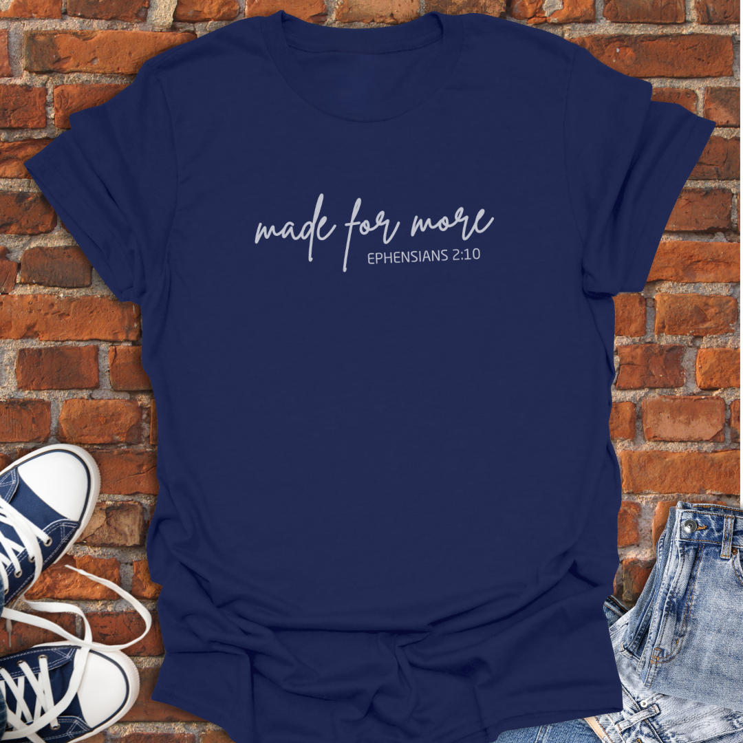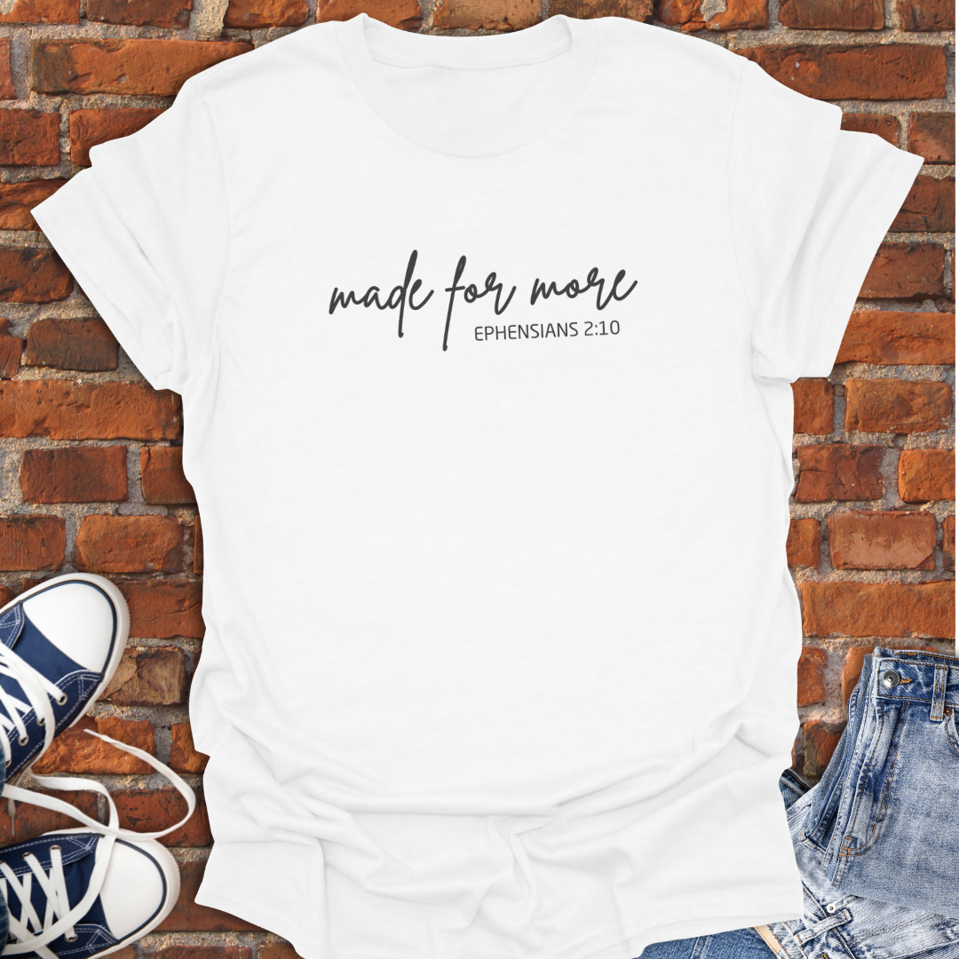 Made for More -long cursive font Ephesians 2:10 Faith T-Shirt size XS to 5XL
