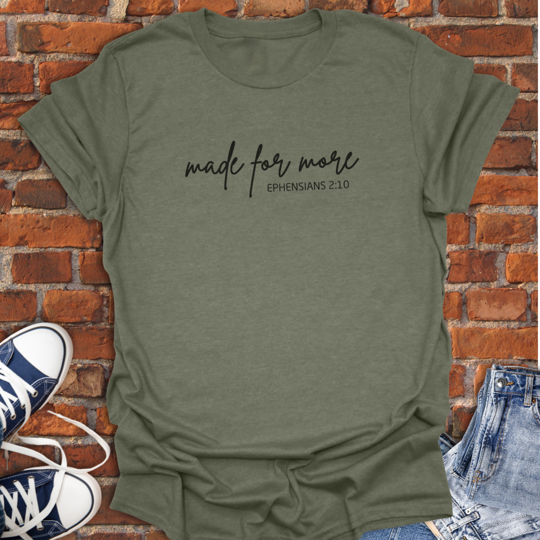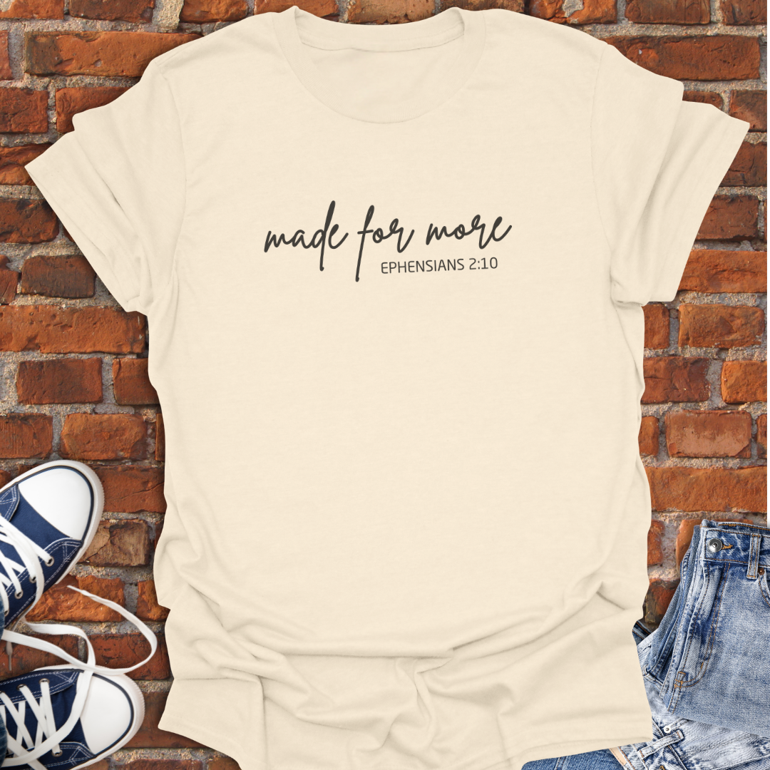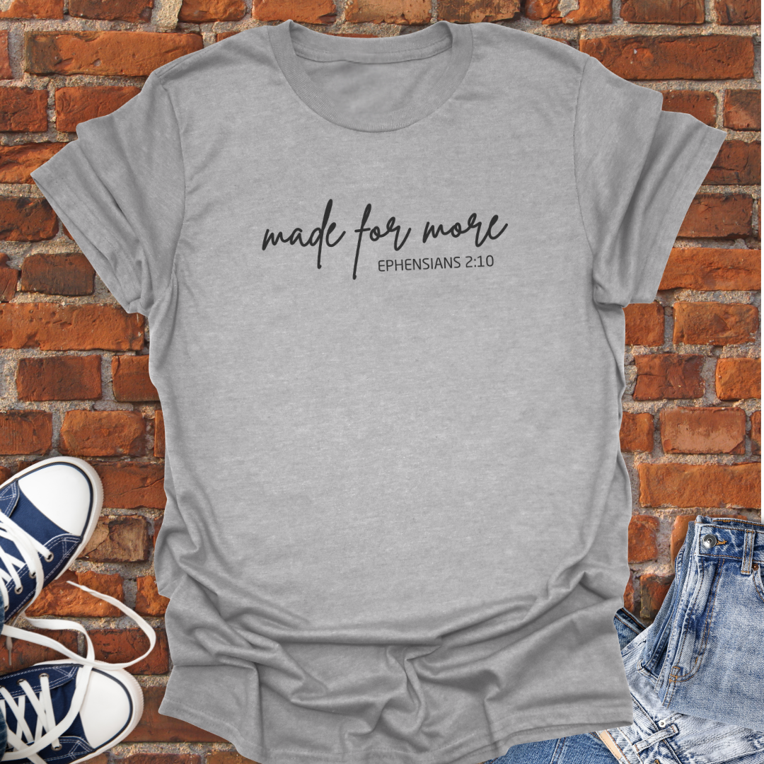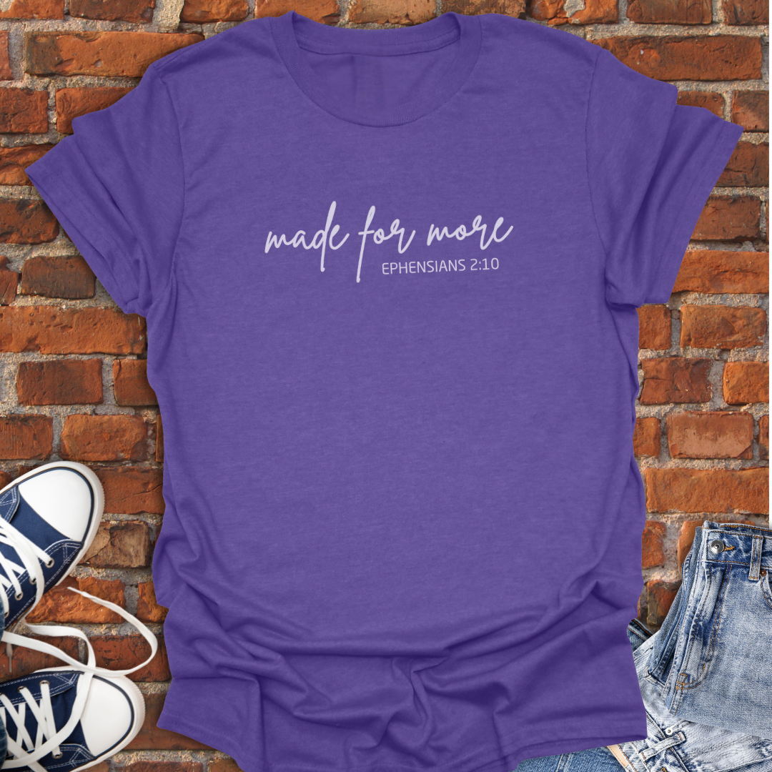 Made for More -long cursive font Ephesians 2:10 Faith T-Shirt size XS to 5XL