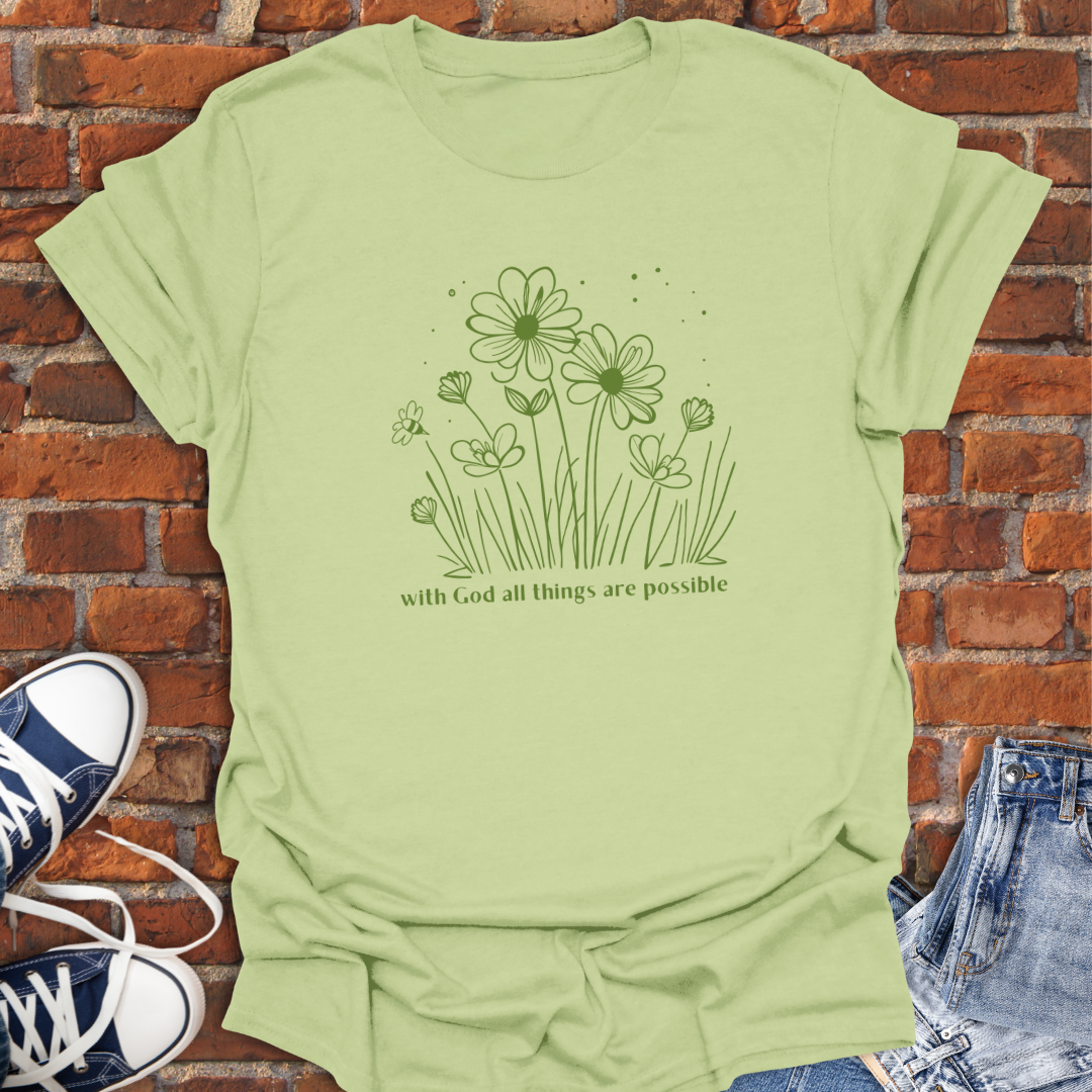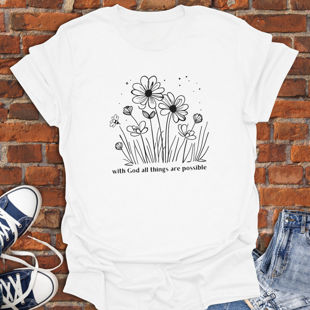 With God All Things are Possible -flowers Faith T-Shirt size XS to 5XL